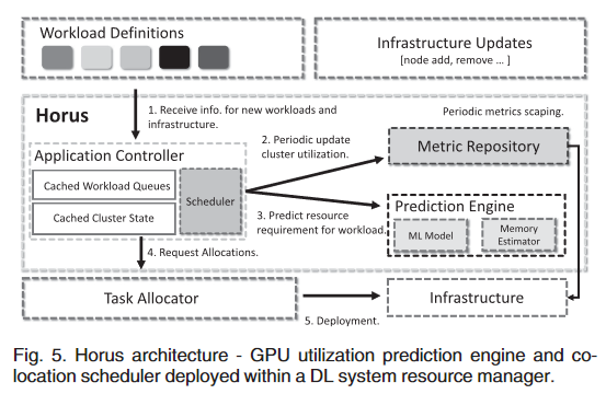 - Horus 是一个基于预测的、支持干扰的 DL 系统资源管理器,它被设计成一组组件,可以作为现有集群资源管理器框架(如 Kubernetes)的一部分部署。