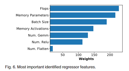 - 预测引擎通过迭代 DL 模型的开放神经网络交换(ONNX)图表表示来提取表3中描述的关键 DL 工作负载特征。我们可以通过迭代每个运算符,并根据其输入、输出形状和参数进行计算,获得 FLOP 等聚合特征。